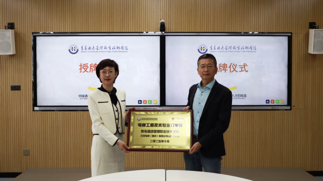 在热烈的掌声中,万御电梯刘总和张勇院长共同为“青岛酒店管理职业技术学院—万御电梯订单班”揭牌,这标志着首个聚焦于电梯技术领域的校企合作订单班正式启动。
